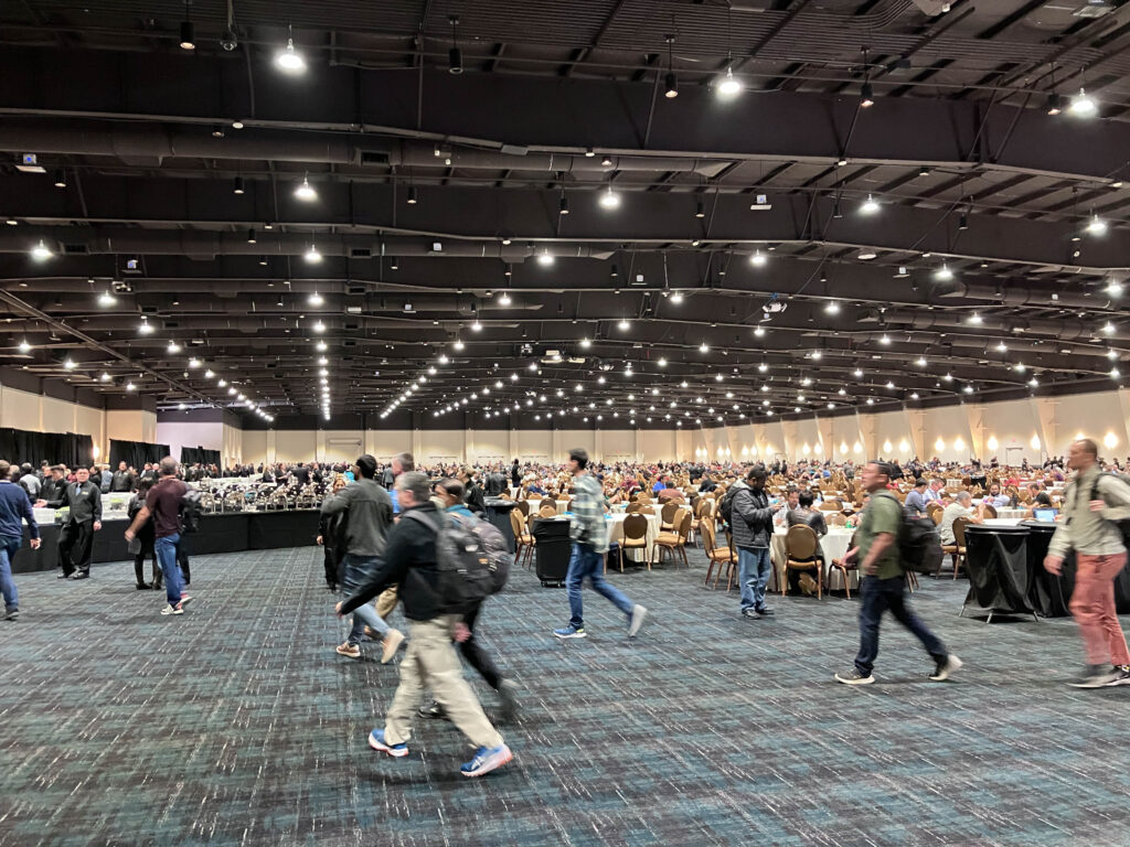 第一天早上沒提供早餐,所以8點左右才出門,昨天有先探路,所以知道我住的飯店經由Caesars Forum(CF)可以過去The Venetian。進去前要安檢,並檢查包包,但之後在不同會場透過巴士移動,就不用再過安檢。