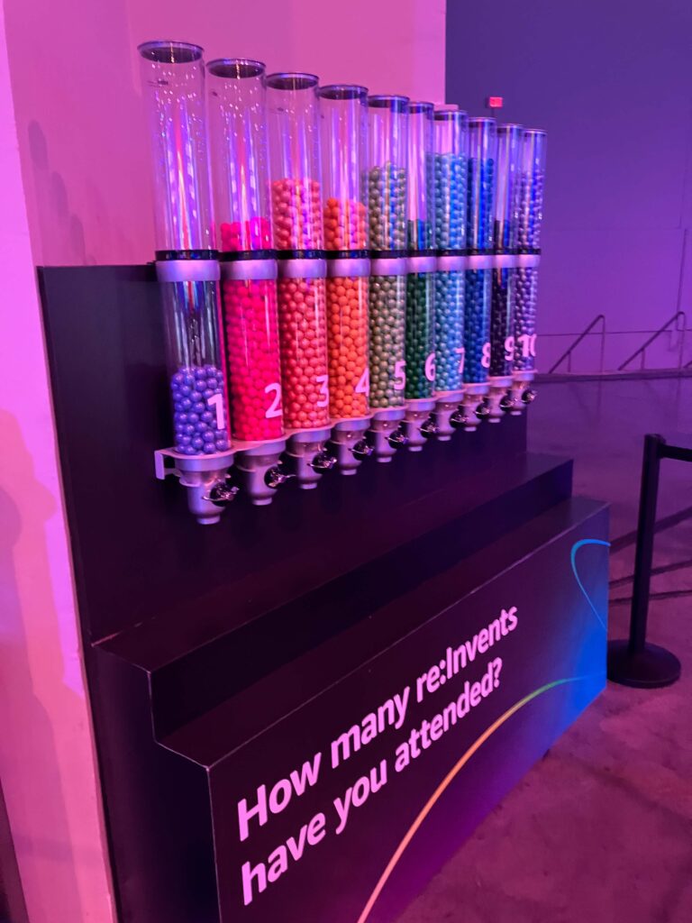 這好像是口香糖吧? 您參加了幾次的re:Invent呢? 看起來是第一次參加的人比較多喔。
