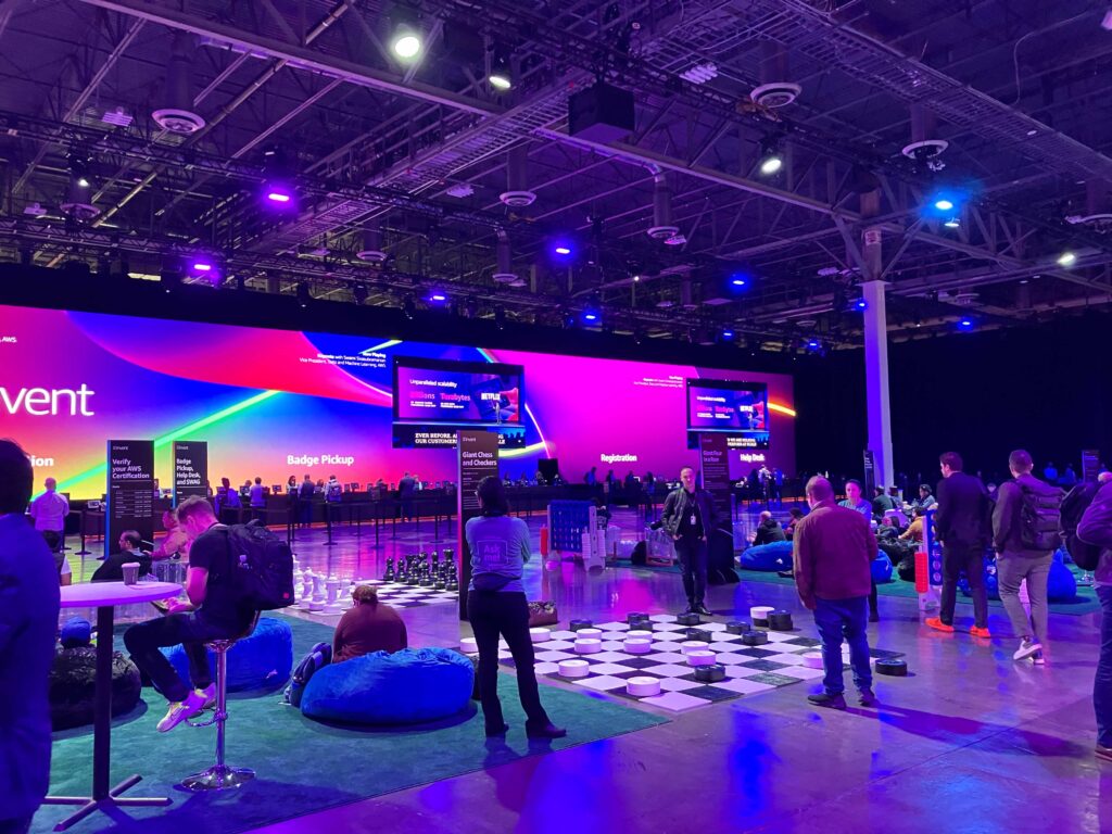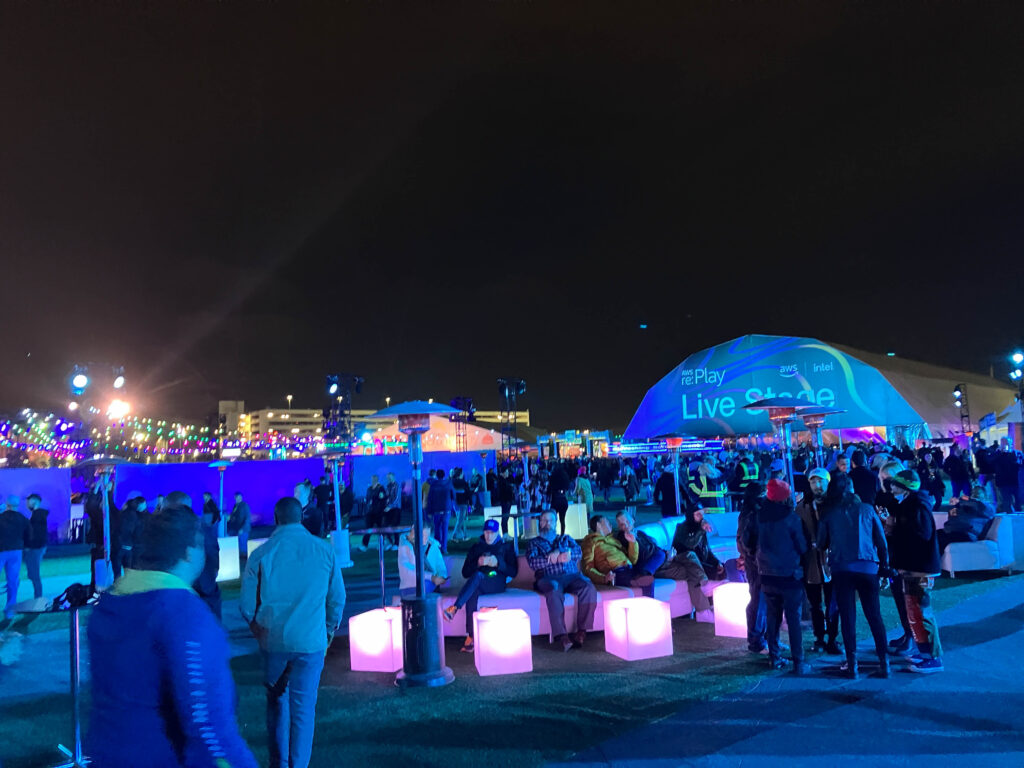 re:Play真的很好玩,與會者可以邀請一位訪客,但要繳交$300入場費,可見AWS投資相當多資源在這。我個人也是覺得要成群結隊去才好玩,不然只能待在Main Stage喝悶酒跟跳舞。還有如果你不想浪費時間排隊跟餓肚子,最好先吃飽後再去參加。
