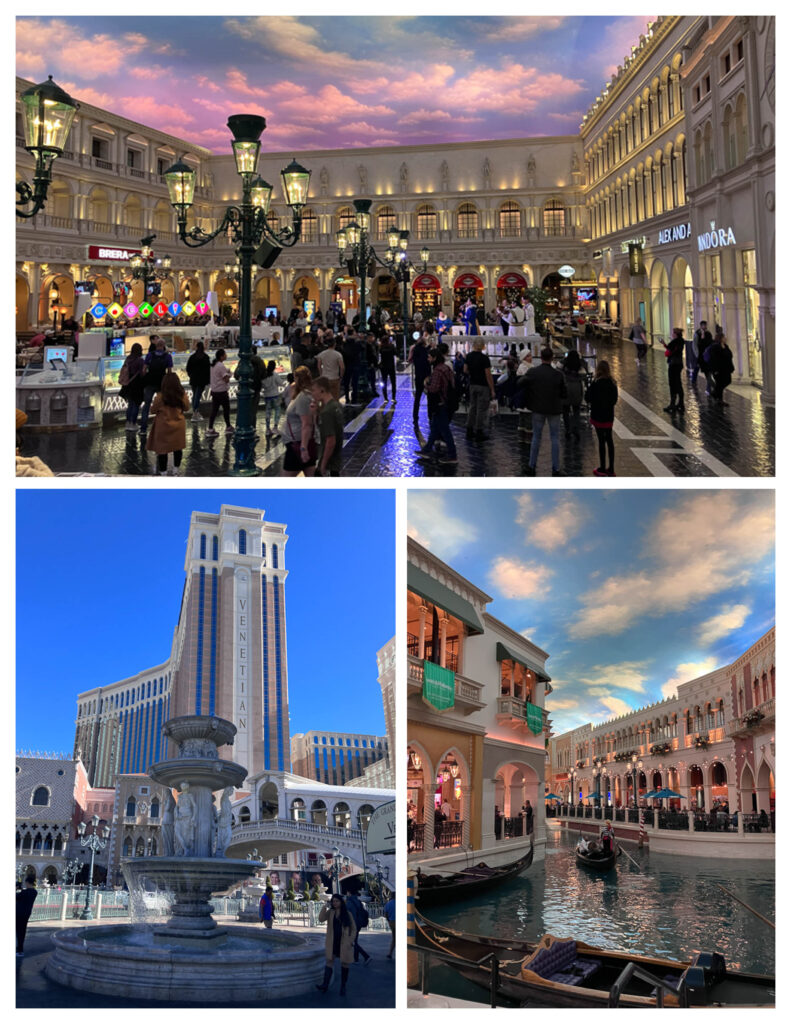 填飽肚子後,就準備前往主會場The Venetian報到了! 威尼斯人酒店的特色就是,室內的購物中心有藍天白雲跟小運河,廣場還有現場表演,讓人好像置身在戶外。