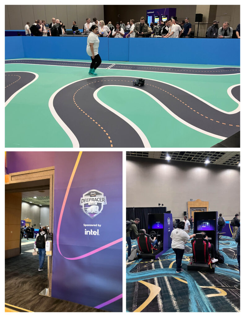 路上經過這個DEEPRACER的會場,我還以為裡面的遙控汽車是坐在賽車椅上面的人在操控。後來才知道這個透過ML,搭配立體攝影機和LiDARe感應器的自動駕駛賽車! 台灣還囊括冠軍賽全球前三名,真是太優秀了!