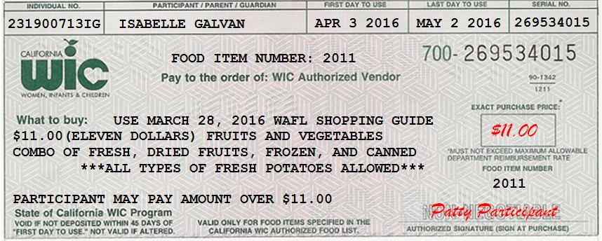 補助的對象是懷孕婦女、嬰兒與5歲以下的兒童,WIC每個月會發給食物劵,提供營養補助。食物劵上有姓名、有效期限、最高補助金額、食物種類等。