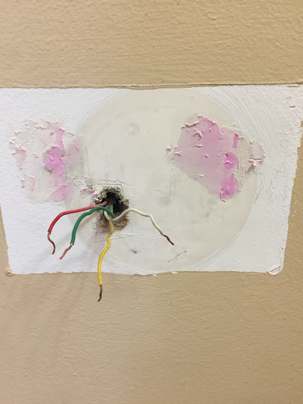 這油漆顏色實在不好挑又費時,最後只好買Google Nest Thermostat Trim Kit,把後面給遮住。所以建議有客製化油漆的朋友,直接買個基座會比較快。